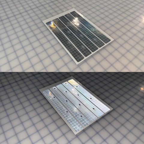 These reflective shapes are cut from Oralite SOLAS which the most premium prismatic film. It has a candela power of 1000+ which is 10x brighter than type 1 engineer grade which is what most everyone else uses. Oralite SOLAS is the same material seen on US Coast Guard vessels, life jackets, ocean buoys, etc.