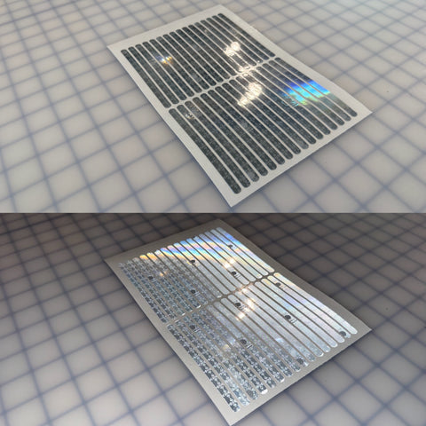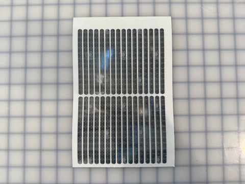 Sold by the sheet. Each sheet has 32 Strips. 0.25" x 4" Inch in size. Silver/Gray in Color. Peel and Stick application. Prismatic Oralite M82 1403 SOLAS.