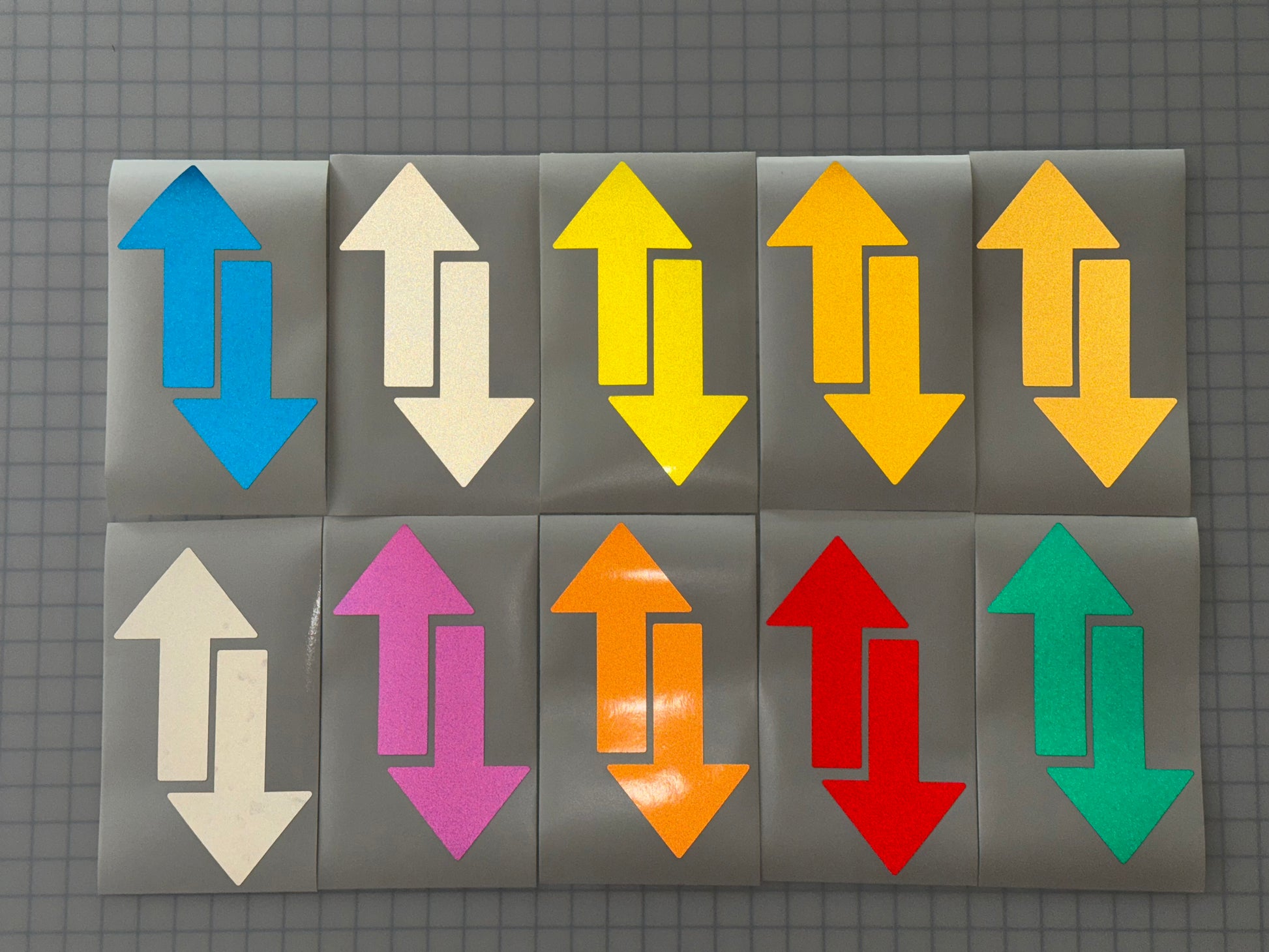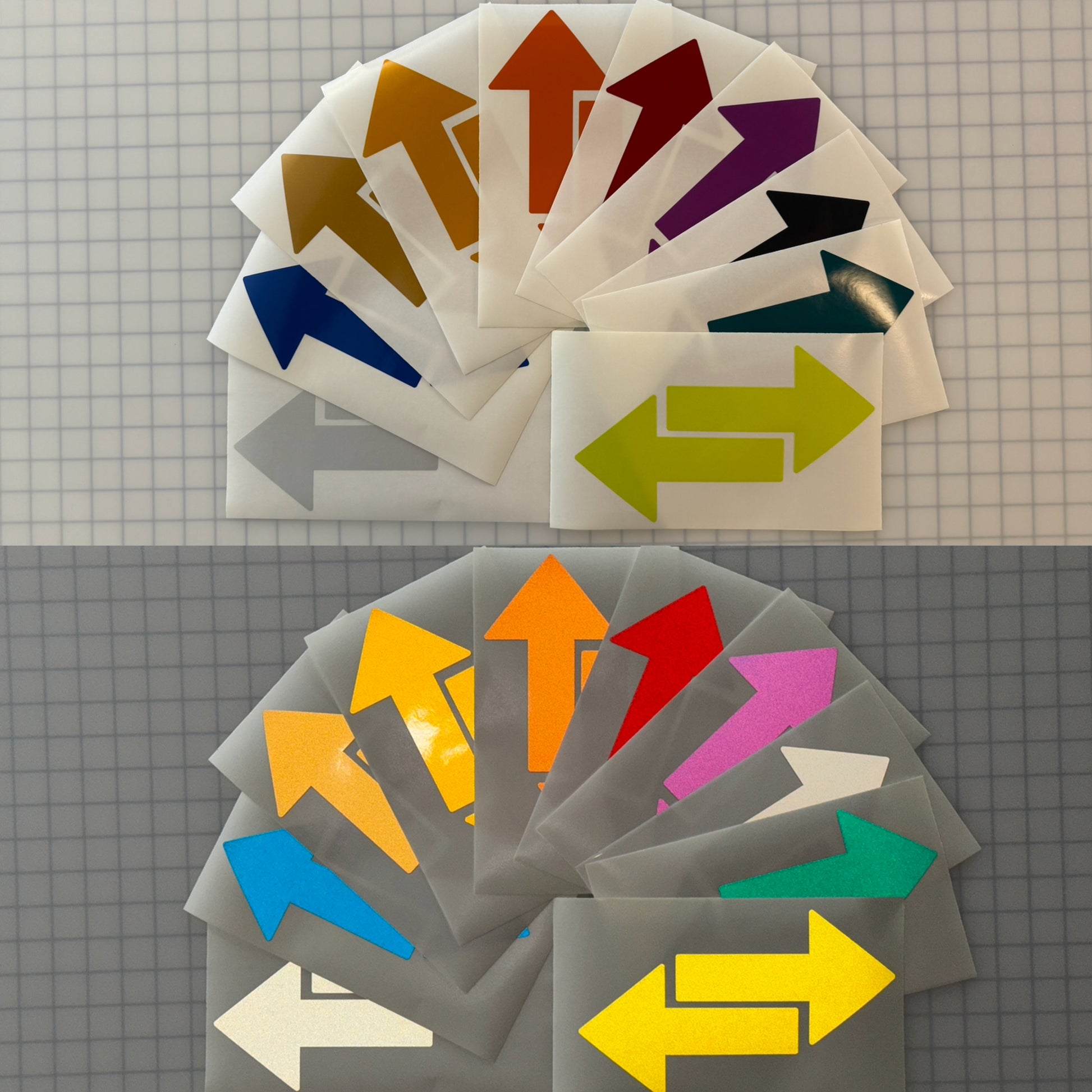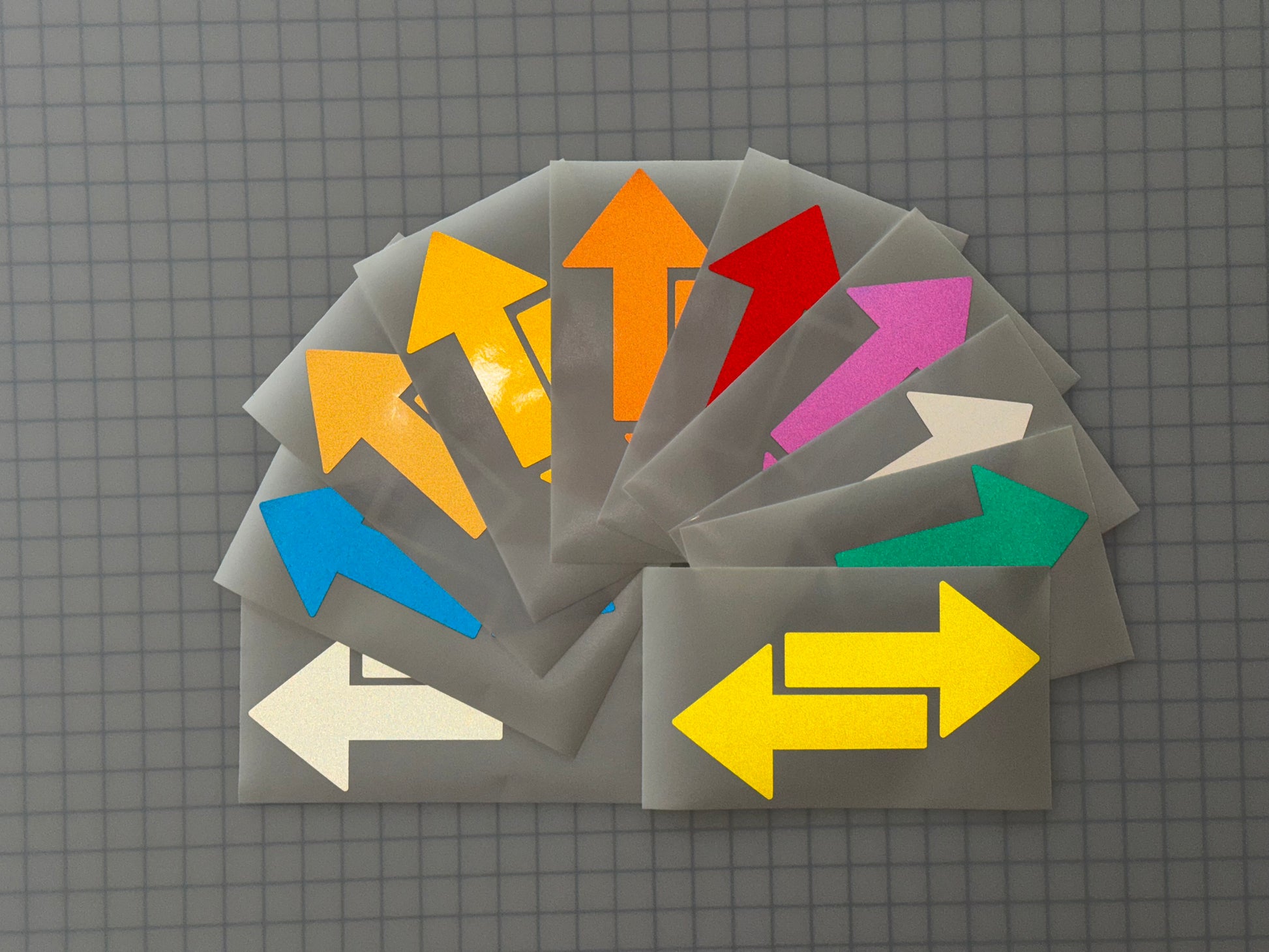 Sold by the sheet. Each sheet has 2 Arrows. Peel and Stick application. Apply to clean dry surface. Will bend around slight curves.
