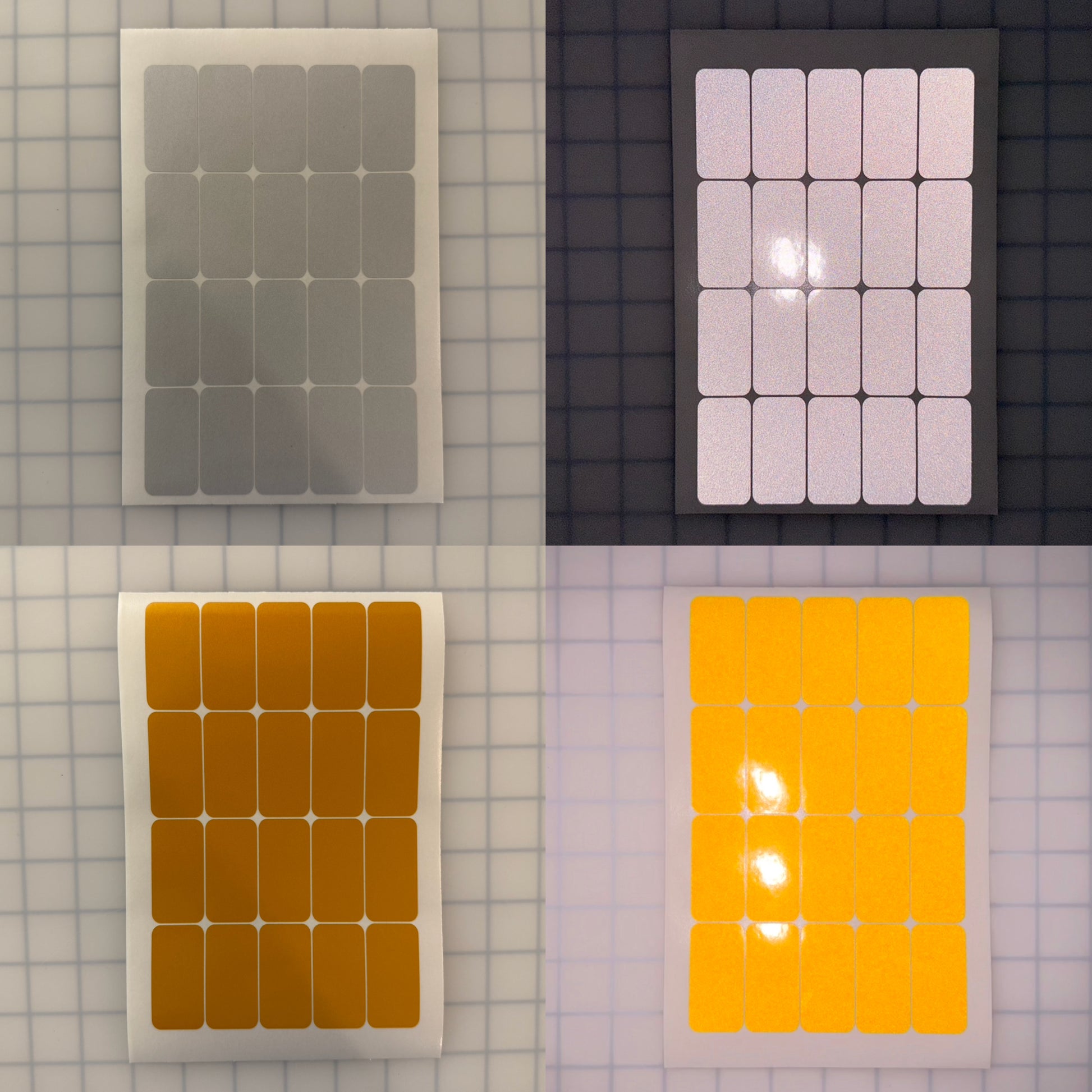 Both material are a Type 1 Engineer Grade film. Same material seen on police vehicles, EMS, reflective signs, and more. 100 Candelas.
