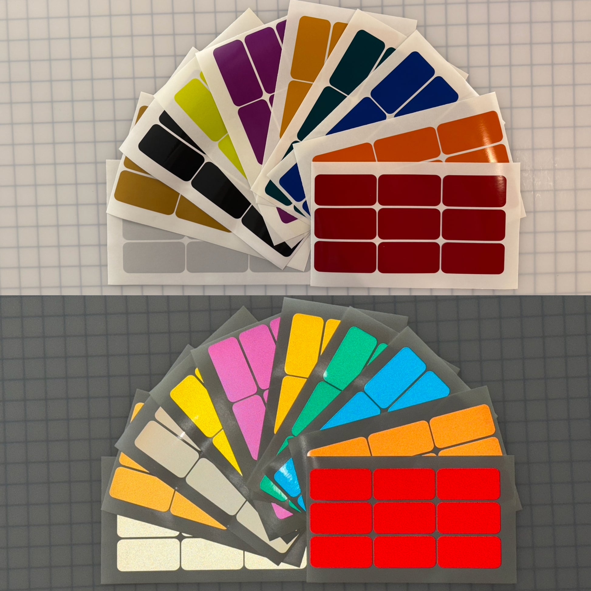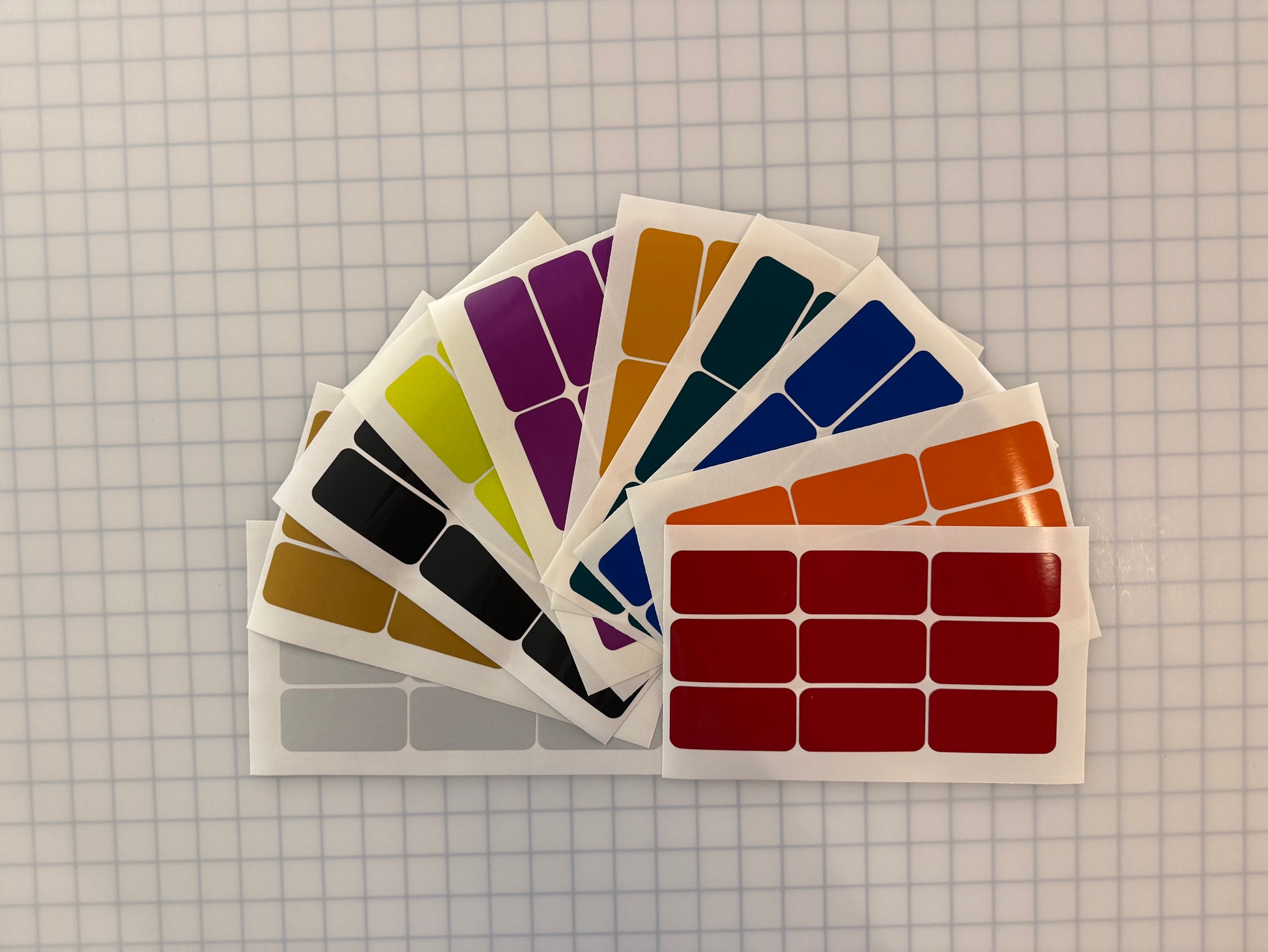 Sold by the sheet. Each sheet has 9 Rounded Rectangles. Peel and Stick application. Apply to clean dry surface. Will bend around slight curves.